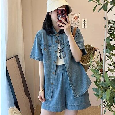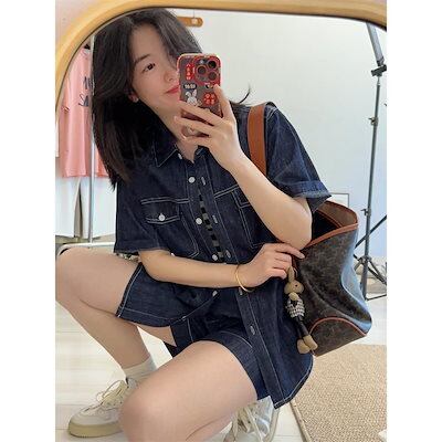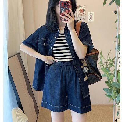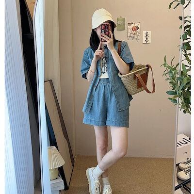 2点セット デニム Tシャツ ショートパンツ ファッション トップス 半袖 レディース服 韓国ファッション パンツ ジャケット