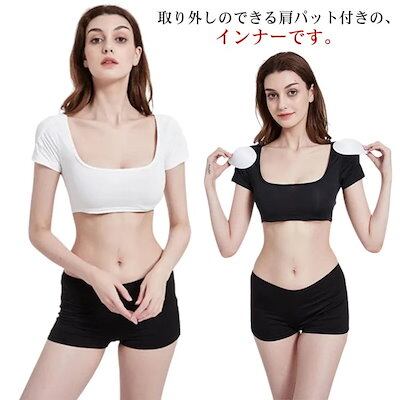 肩パッド付き インナーシャツ 半袖 レディース 肩パッド付きインナー スクエアネック なで肩 高低差 パワーショルダー 肩対策 取り外し可能 肩パット付き トップス 下着 ショルダーパッド 補整下着