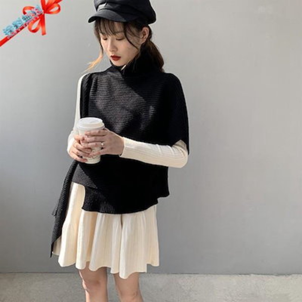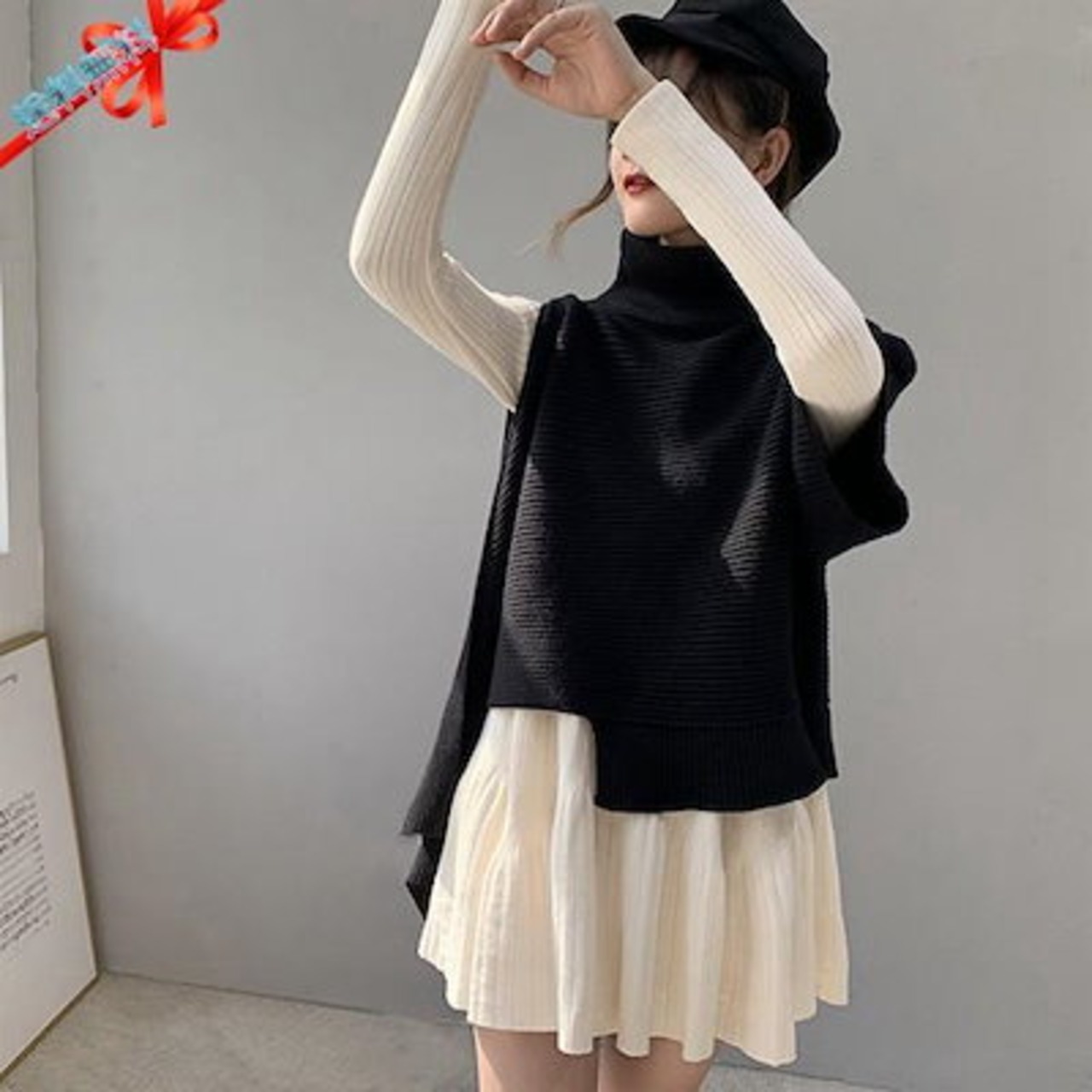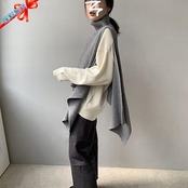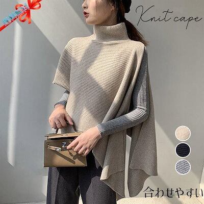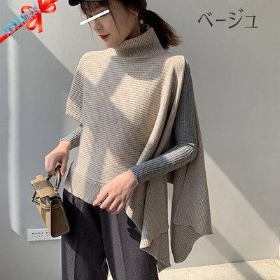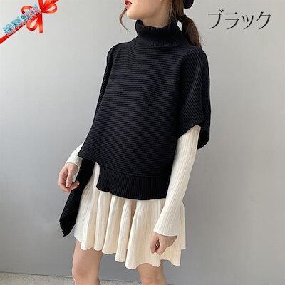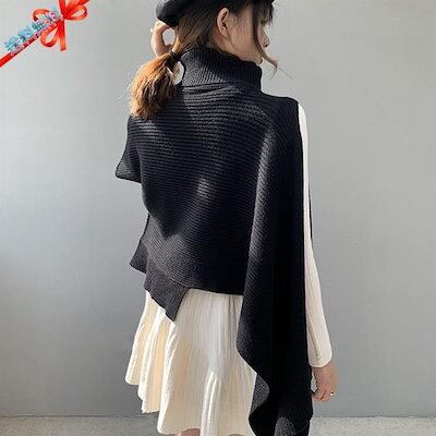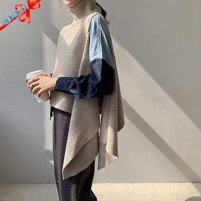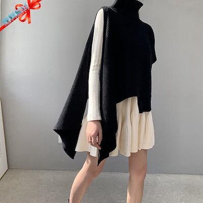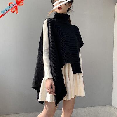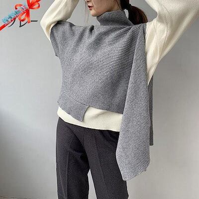 ニットベスト 変形 セーター トップス レディース ノースリーブ 半袖 ハイネック タートルネック アシンメトリー ストール 秋冬 ケープ プルオーバー モード