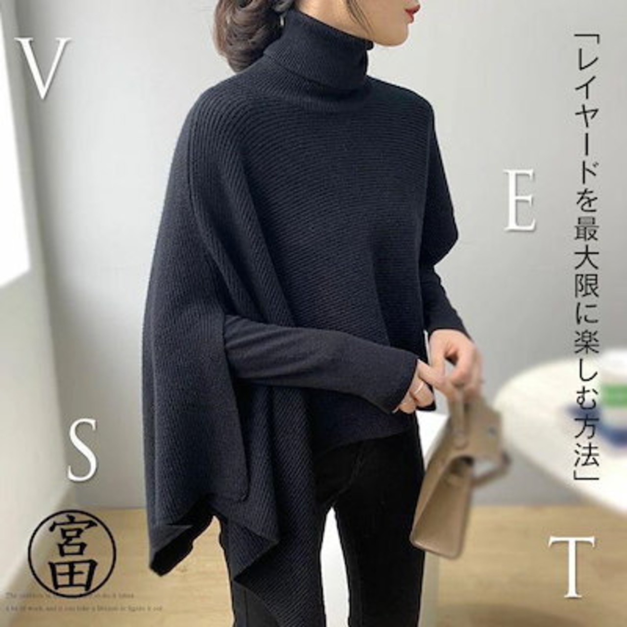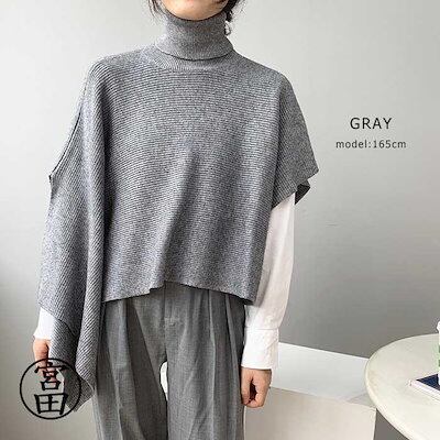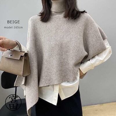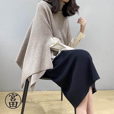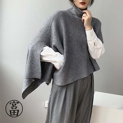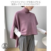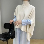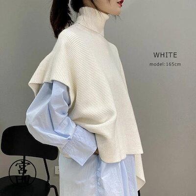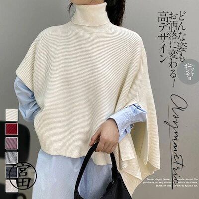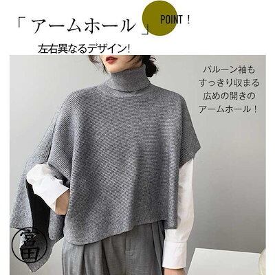 ベスト ポンチョ ニット 変形 セーター トップス レディース ノースリーブ 半袖 ハイネック タートルネック アシンメトリー アシメ ストール チョッキ 秋冬 ケ