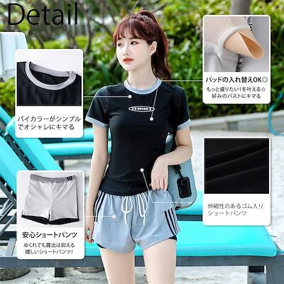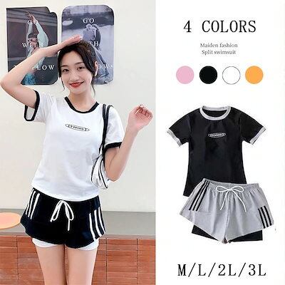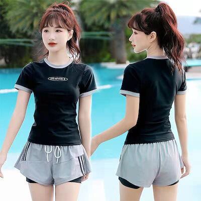 2点セット 水着 体型カバー スポーツ 水着 中学生 レディース スクール水着 ガールズ 水着 セパレート 半袖 スポーツウエア トップス パンツ キッズ 水着 女の子 160 小学生 中学生