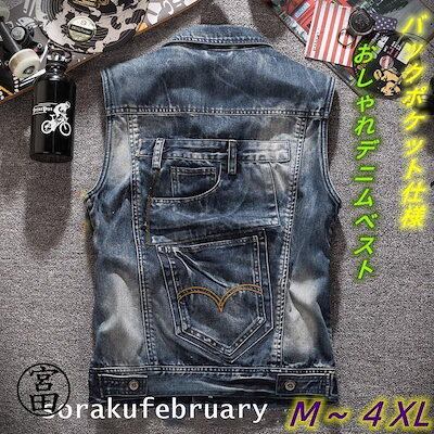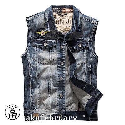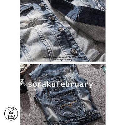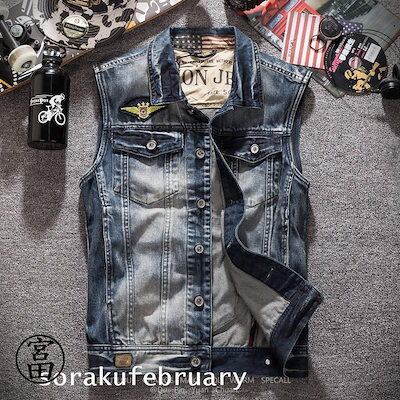 デニム ベスト メンズ チョッキ ジレ レディース 男女兼用 アメカジ ダメージ 大きいサイズ対応 Gジャン ジージャン ノースリーブ ジャケット ジャンパー ア