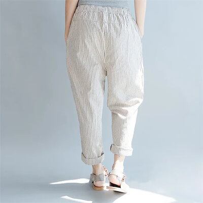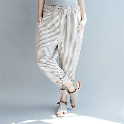 ボトムス 涼しい カジュアル ストライプ 春 サルエルパンツ ゆったり パンツ レディース サルエル 7分丈 夏
