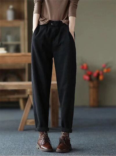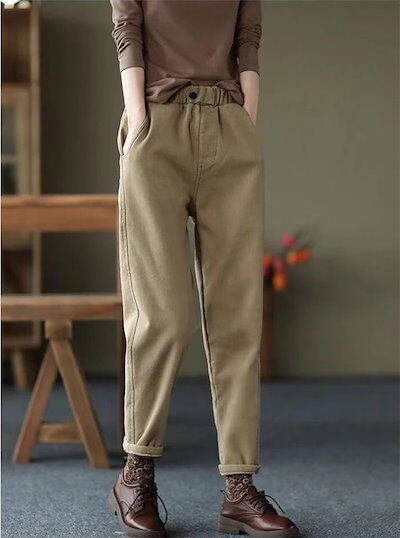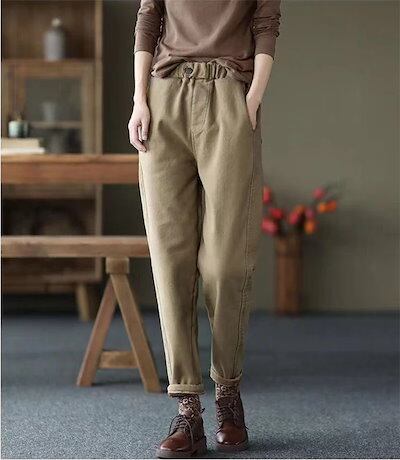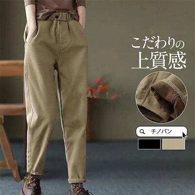 裏起毛 厚手 ウエストゴム レディース カジュアル チノパン テーパードパンツ ロング丈 秋冬 裏ボア 秋冬