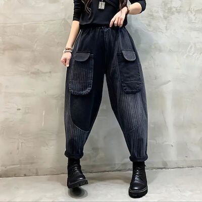 春秋日系文芸風 レディース ハーレムパンツ 長さズボン カジュアルズボン スウェットパンツ ドローストリングパンツ 多機能ポケット レトロ純綿ウォーム快適百掛け流行りハンサム韓国ファッション