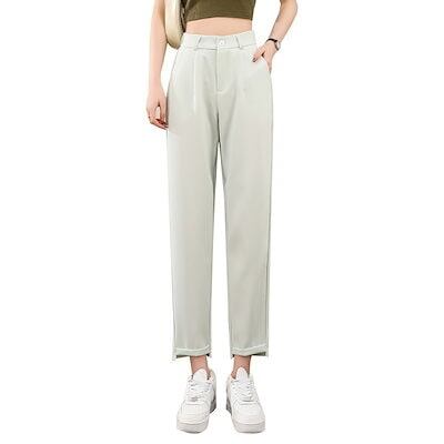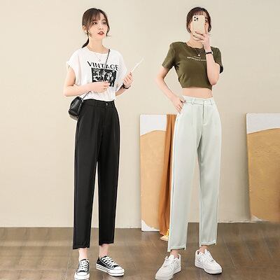九分丈パンツ ハーレムパンツ パンツスーツ ハイウェスト 下首 カジュアル ワイドパンツ 夏 薄い ストレートパンツ