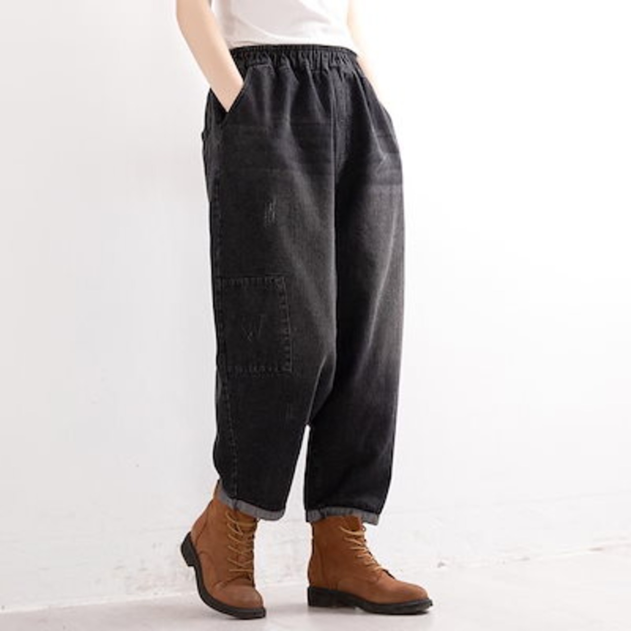 【新品】ワイドパンツ/パンツ/ジーンズ/ゆったり/ジーンズ/レディース/ウエストゴム/ヴィンテージ/レトロ/大きいサイズ/パンツ