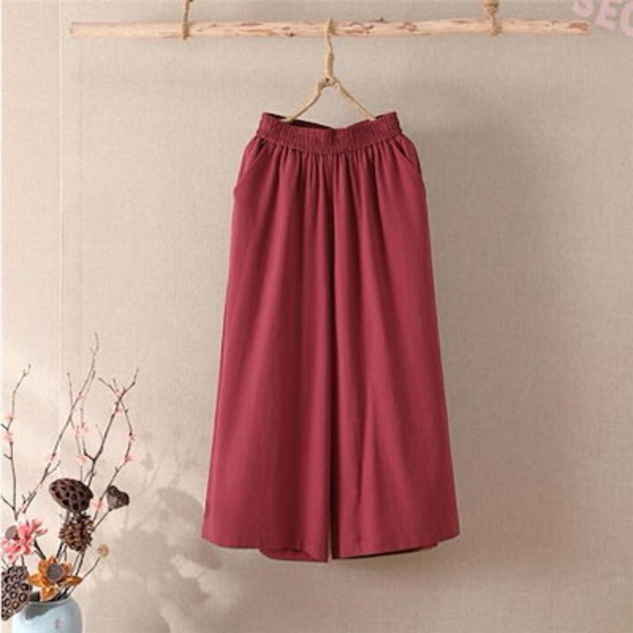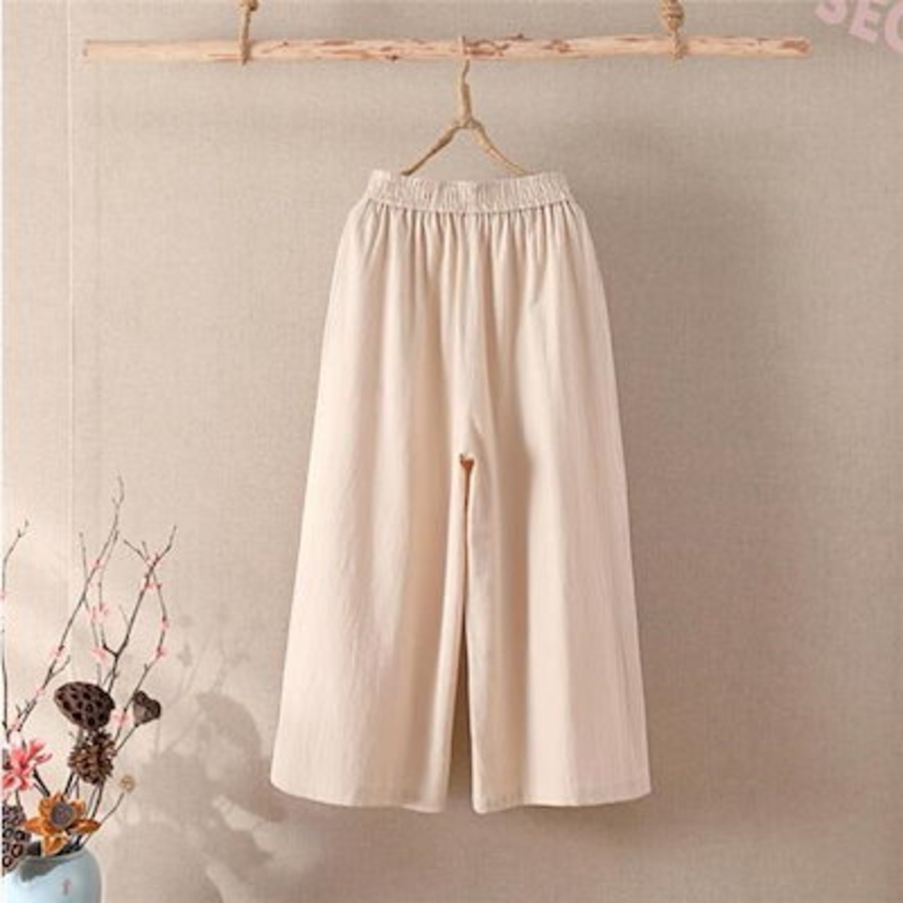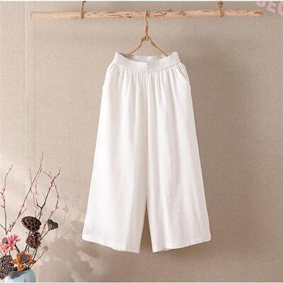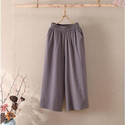 新品(タイムセール)ガウチョパンツ レディース ワイドパンツ リネン風 ウエストゴム 綿 コットン ゆったり 洗える 体型カバー ロング丈 ナチュラル ボ
