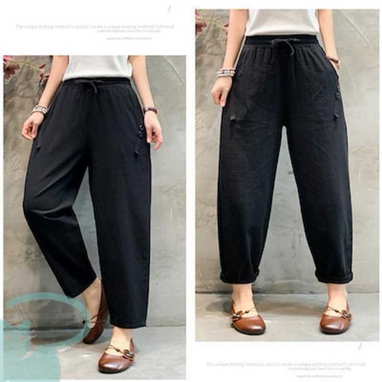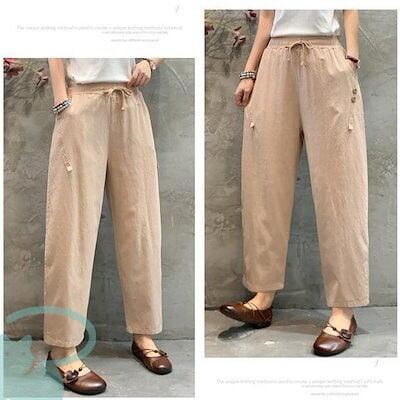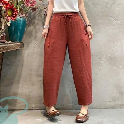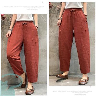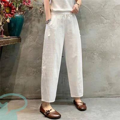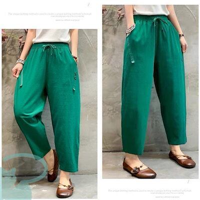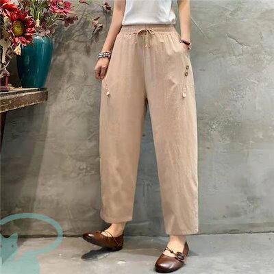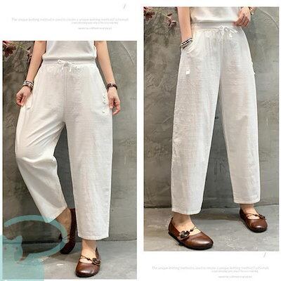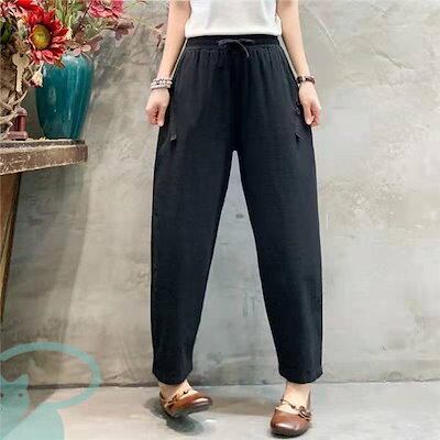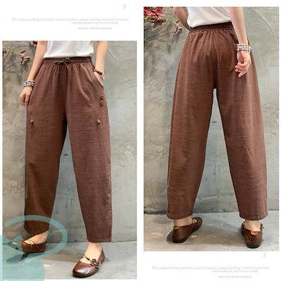 新品(タイムセール)テーパードパンツ レディース リネン風 洗える ゆったり 春秋 体型カバー ロング丈 ナチュラル ボ カジュアル 涼しい 薄手