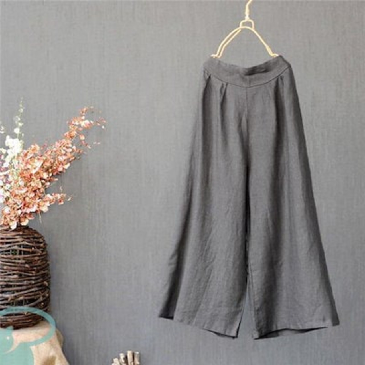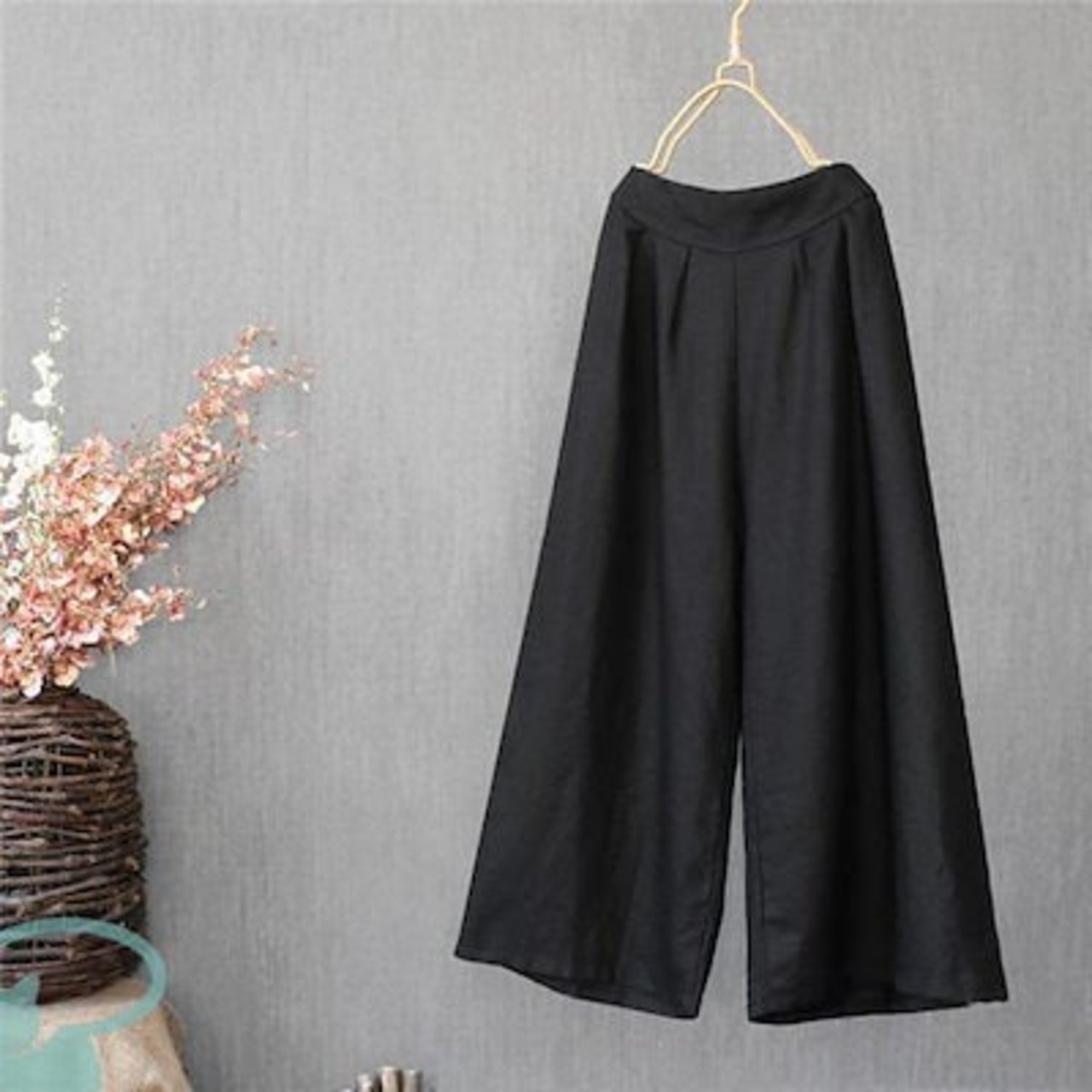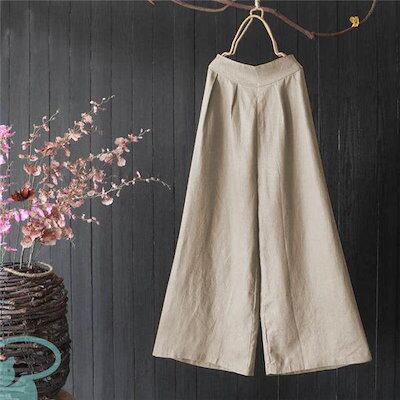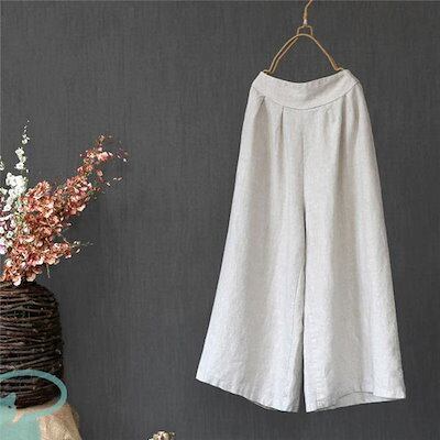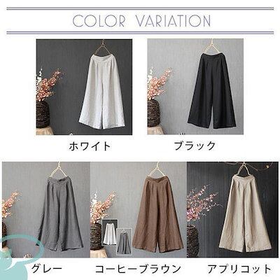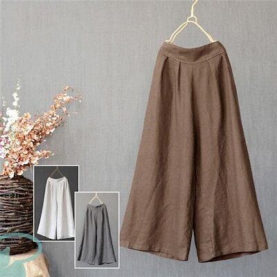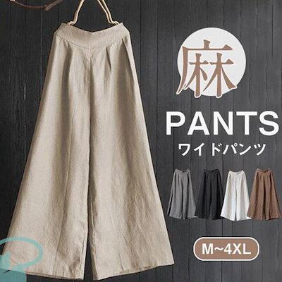 新品(タイムセール)ワイドパンツ レディース リネン風 ウエストゴム 綿 ゆったり コットン 洗える 無地 体型カバー ロング丈 ナチュラル ボ
