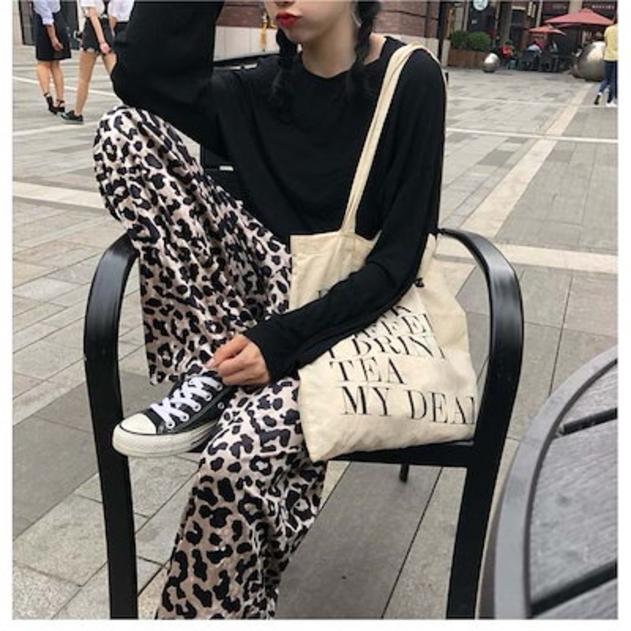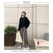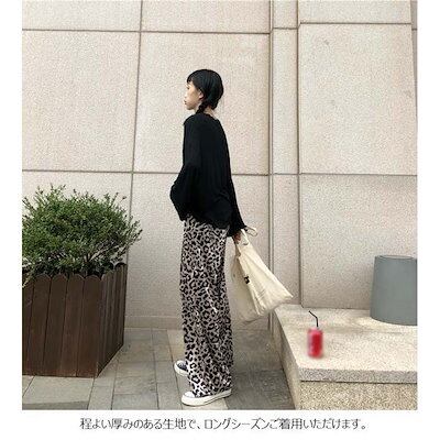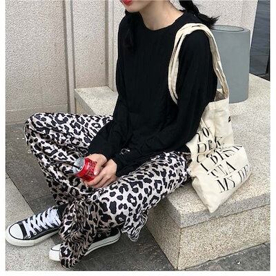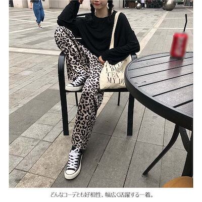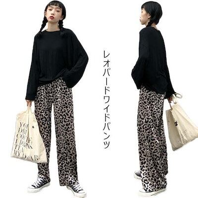 送料無料ワイドパンツ レディース ロング丈 ゆったり レオパード ヒョウ柄 ボトムス 秋 冬 春 秋冬新作