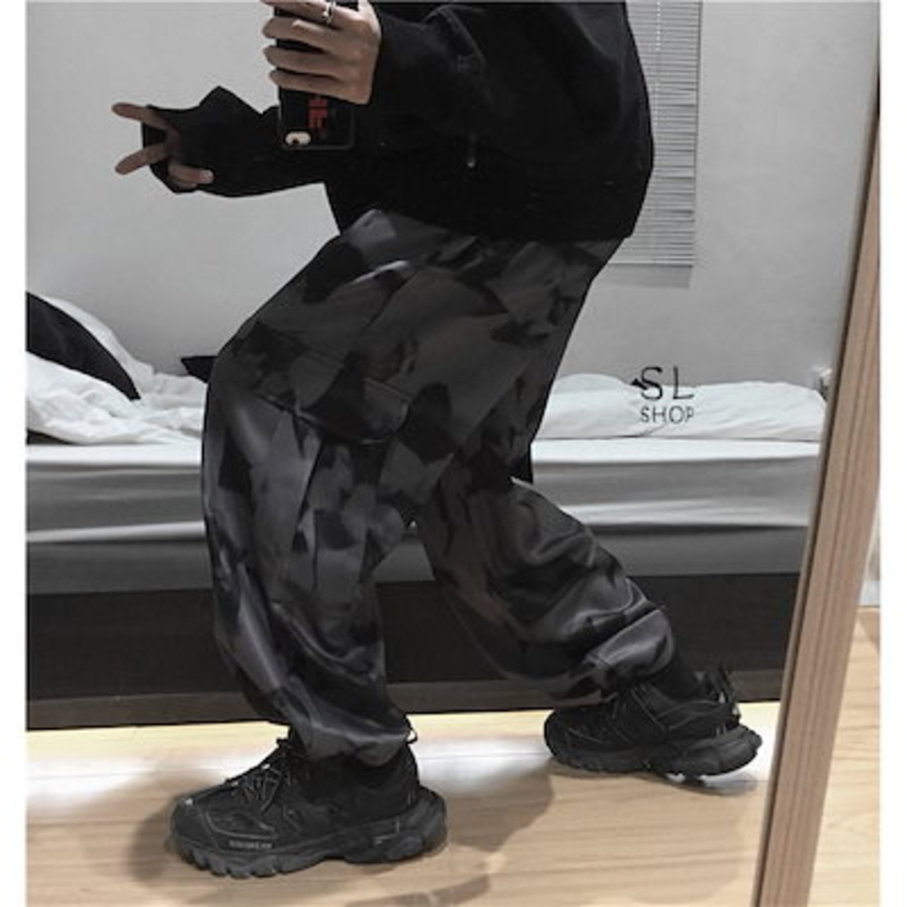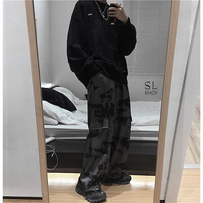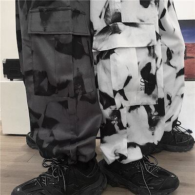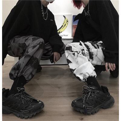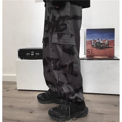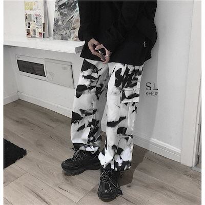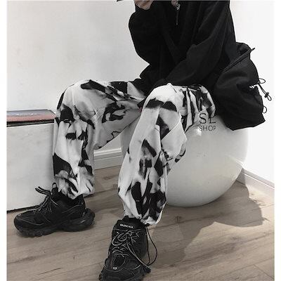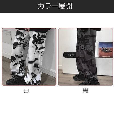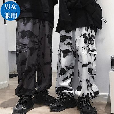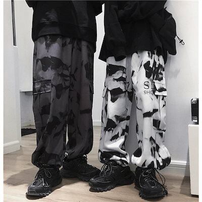 ワイドパンツ レディース メンズ カーゴパンツ 柄物 ウエストゴム ポケット ドローストリング裾 お