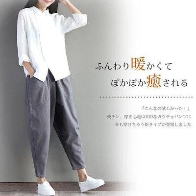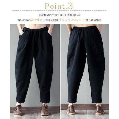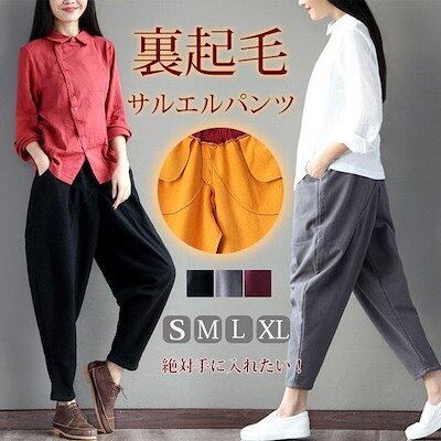 迅速な出荷サルエルパンツ レディース 裏起毛 厚手 あったか 無地 黒 ワイン グレー ナチュラル ワイ