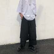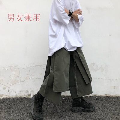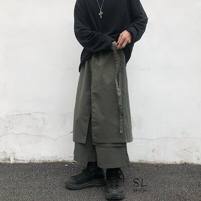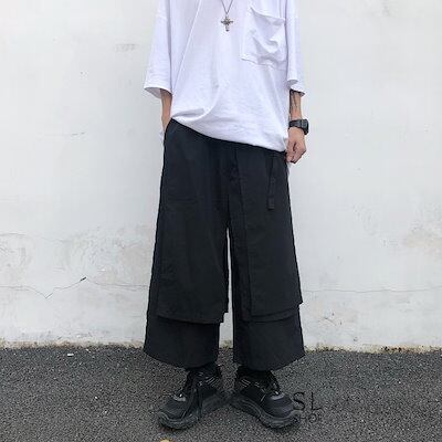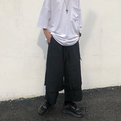 パンツ レディース メンズ ワイドパンツ カジュアル フェイクレイヤード ウエストゴム 男女兼用 衣
