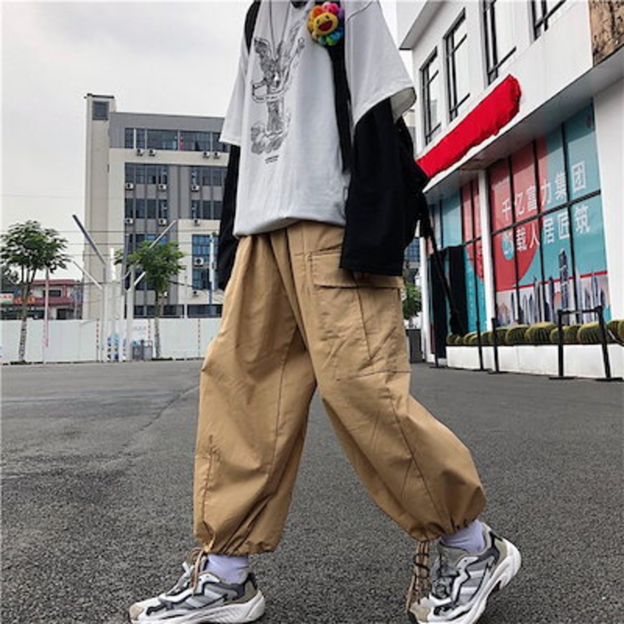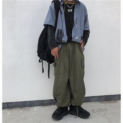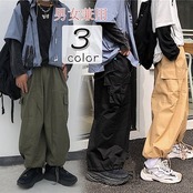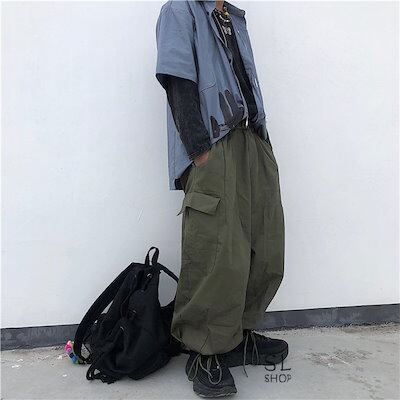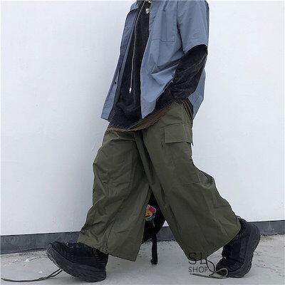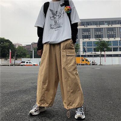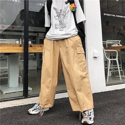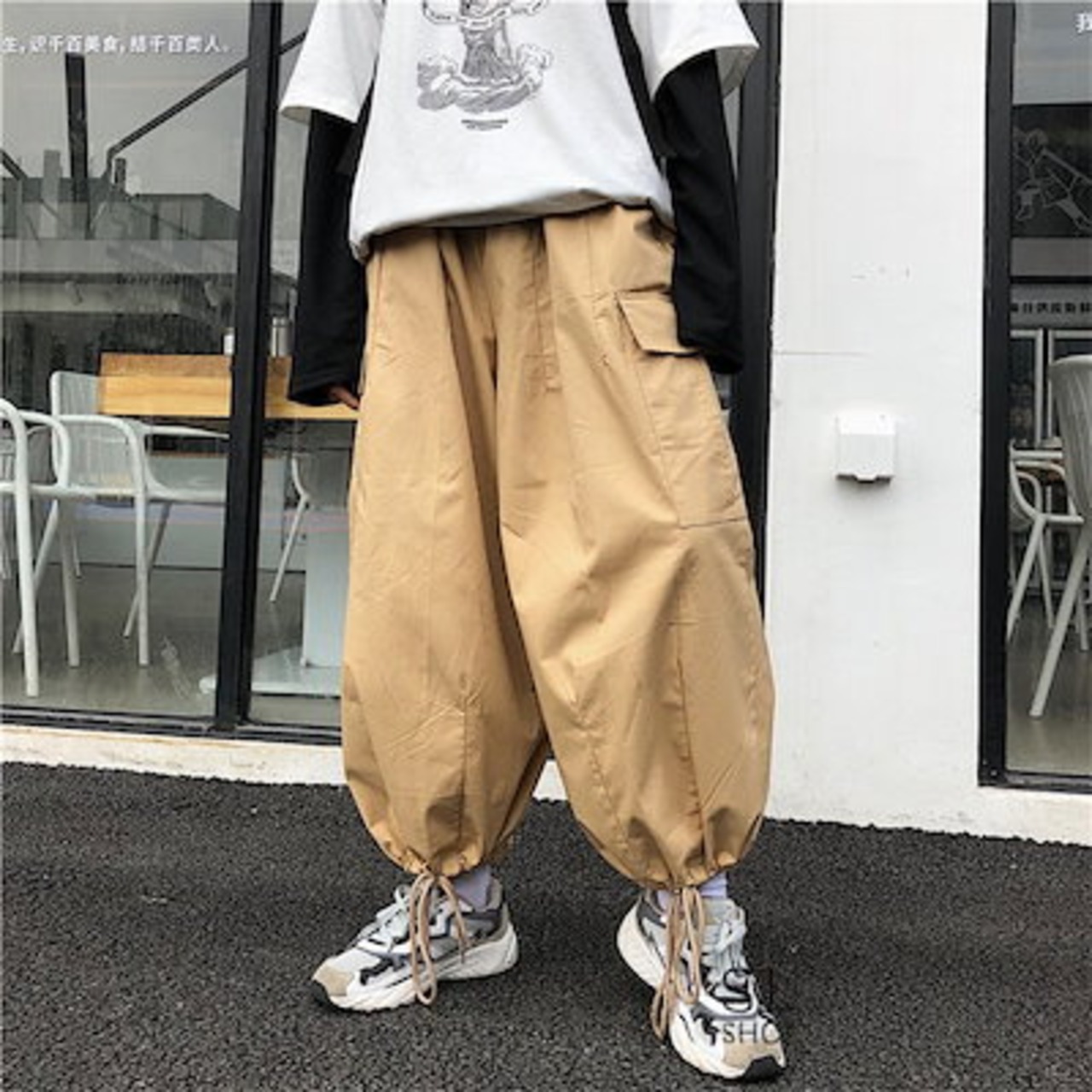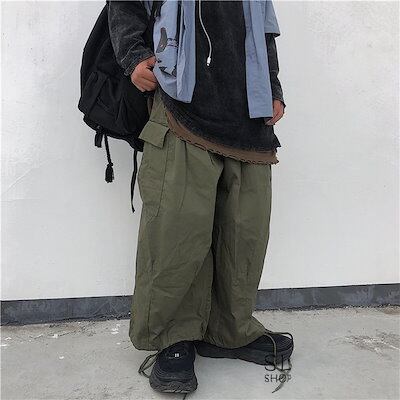 パンツ レディース メンズ ワイドパンツ カーゴパンツ ズボン 裾紐 無地 ウエストゴム カジュアル