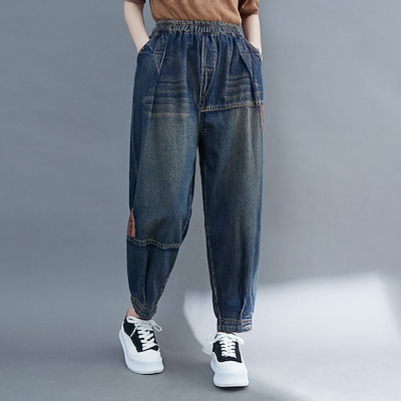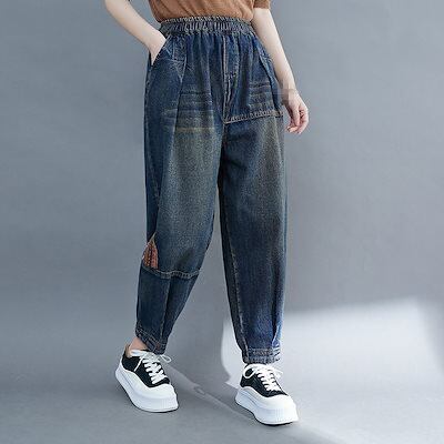 春の新型の高腰ジーンズの女性のゆったりした大きいサイズのハレンズボン32931