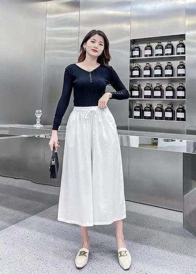 ワイドパンツスカンツ ガウチョ スカーチョ ハイウエスト 夏新作 ポケット付き リネン 綿麻 パンツ レディース 体型カバー