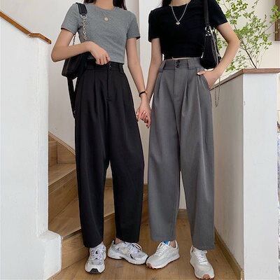 速攻美脚!!テーパードパンツ 無地 ハイウエスト夏 薄手九分パンツゆったりストレートスリムカジュアル ワイドパンツ ウエストゴム レディース