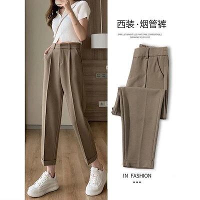 速攻美脚!!テーパードパンツ パンツは夏 薄手ストレートでゆったりとした ハイウエスト垂れ感で9分痩せて見える ポケット ウエストゴム レディース