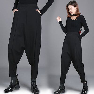 サルエルパンツ レディース 冬 春 40代 大きいサイズ ブラック シック イージーパンツ ロング丈