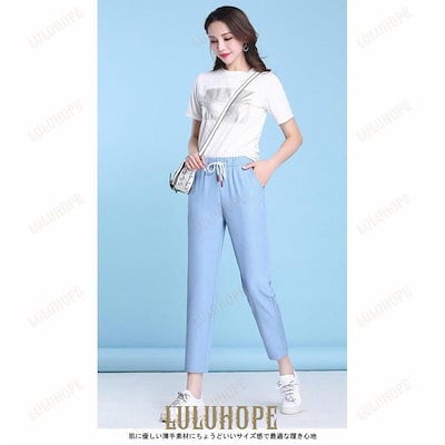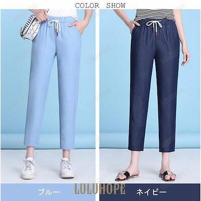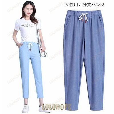 サルエルパンツ レディース 九分丈パンツ 薄手 ズボン ウエストゴム 女性 カジュアルパンツ ロングパンツ 長ズボン 夏 春秋 お洒落
