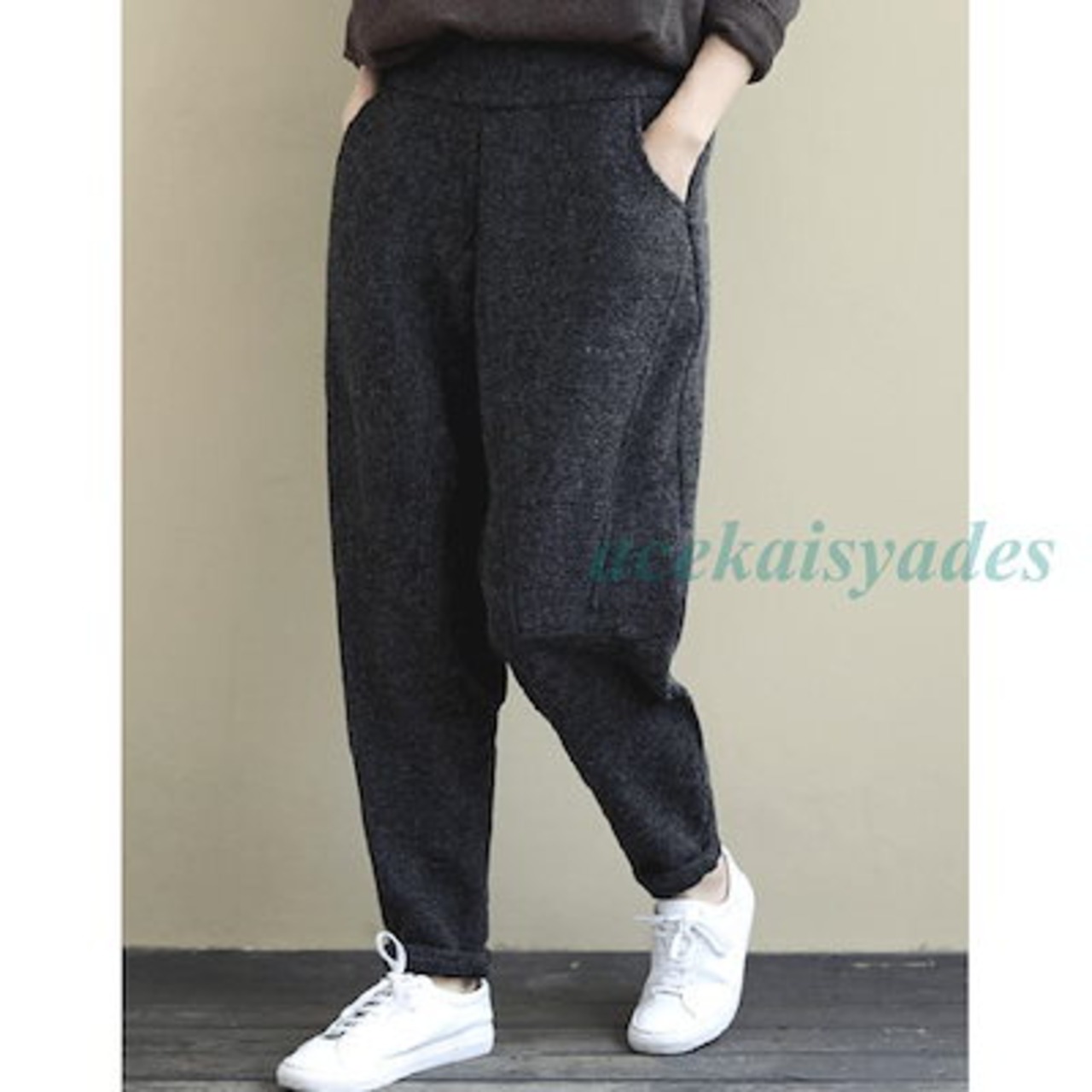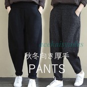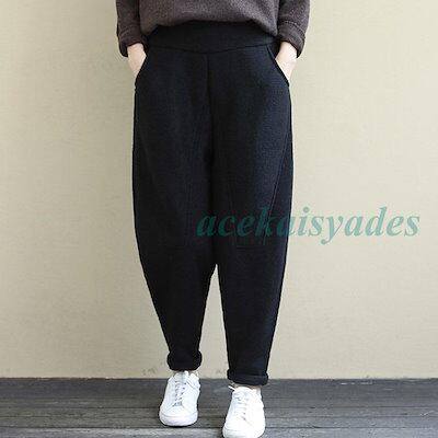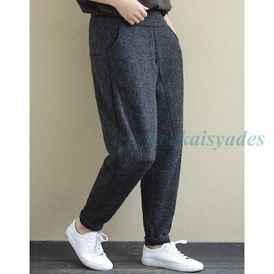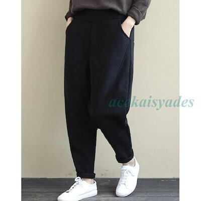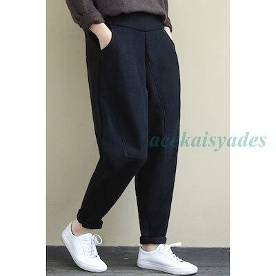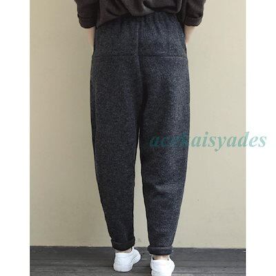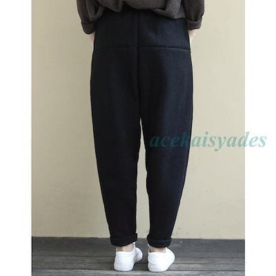 パンツ レディース 秋冬 キレイめ ロングパンツ 裏ボア 裏起毛 サルエルパンツ 冬物 コクーンパンツ ロング丈 ウエストゴム カジュアル ゆったり 黒 グレー