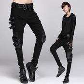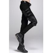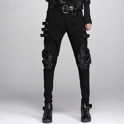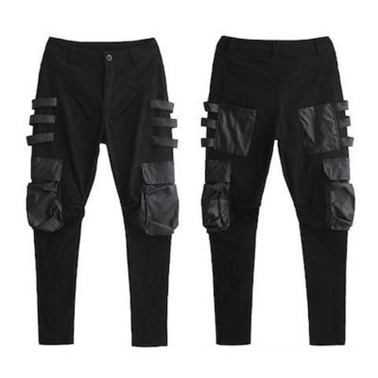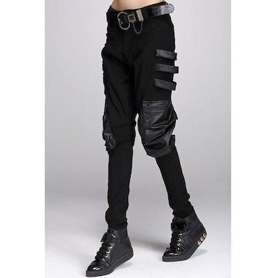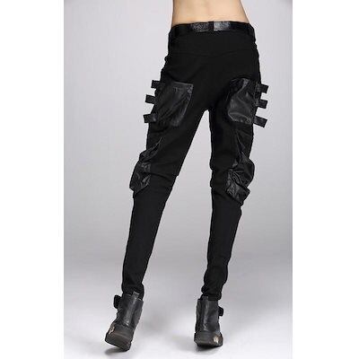 欧米風ファッション ロングパンツ サルエル レディース ボトムス ポケット付き PUレザー切替 個性 ヒップホップ ダンス 衣装 ストリート系 着痩せ パンク