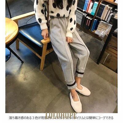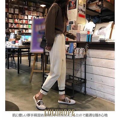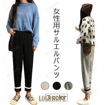 レディース サルエルパンツ 九分丈 パンツ 厚手 ゆったり ウエストゴム ロングパンツ カジュアルパンツ リラックス 春秋 冬 お洒落