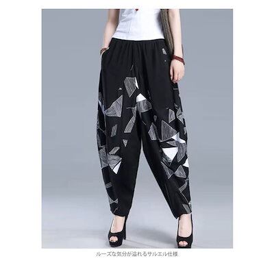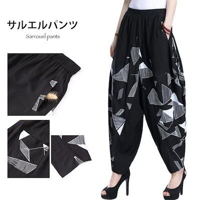 サルエルパンツ レディース サルエル ロングパンツ ロング丈 ゆったり ゆるパンツ ポケット付き ウ