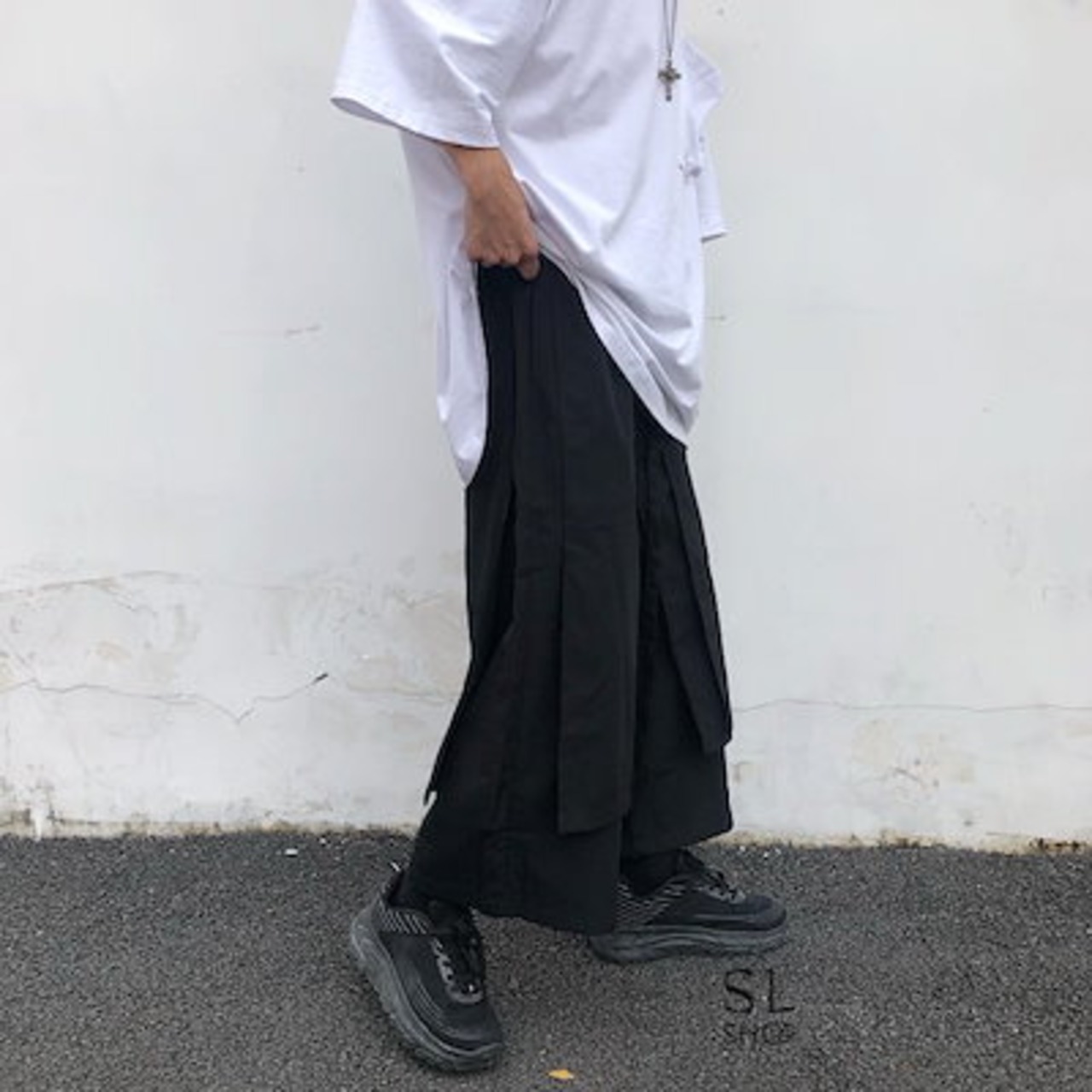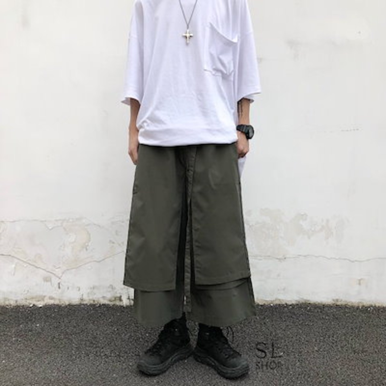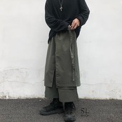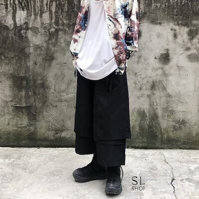 パンツ レディース メンズ ワイドパンツ カジュアル フェイクレイヤード ウエストゴム 男女兼用 衣