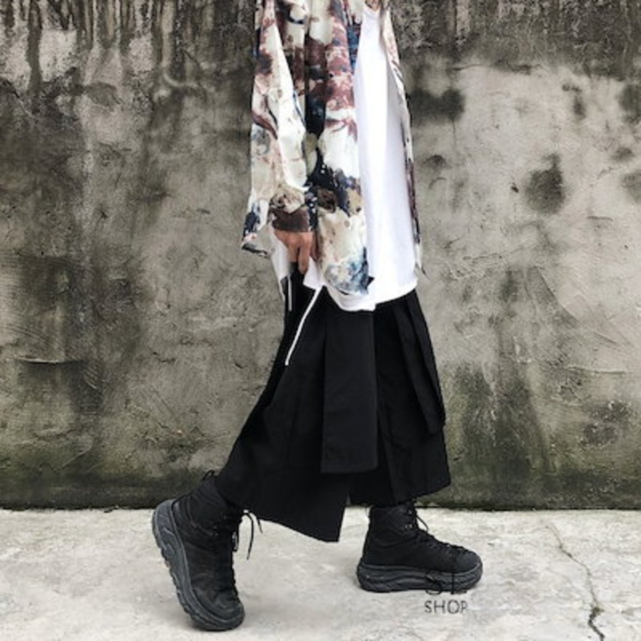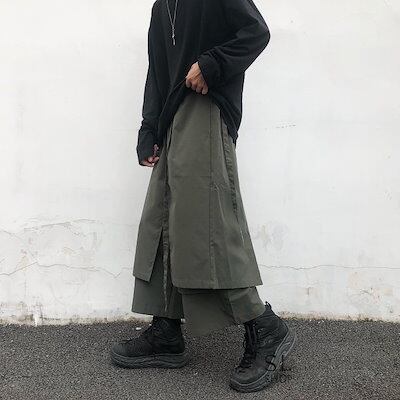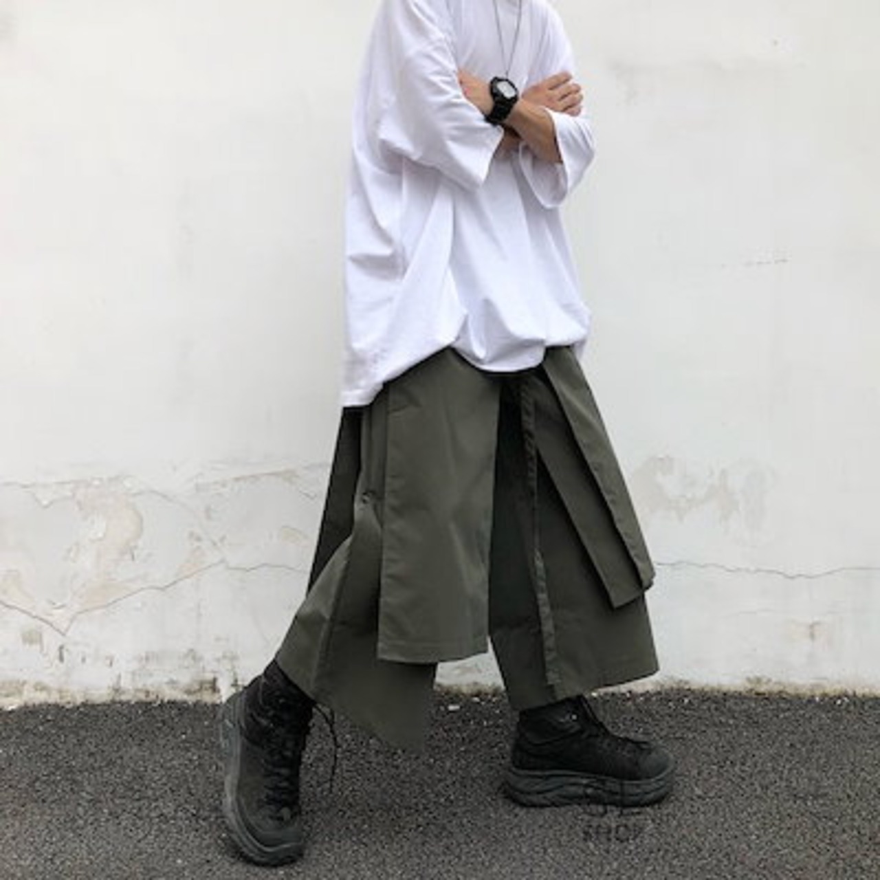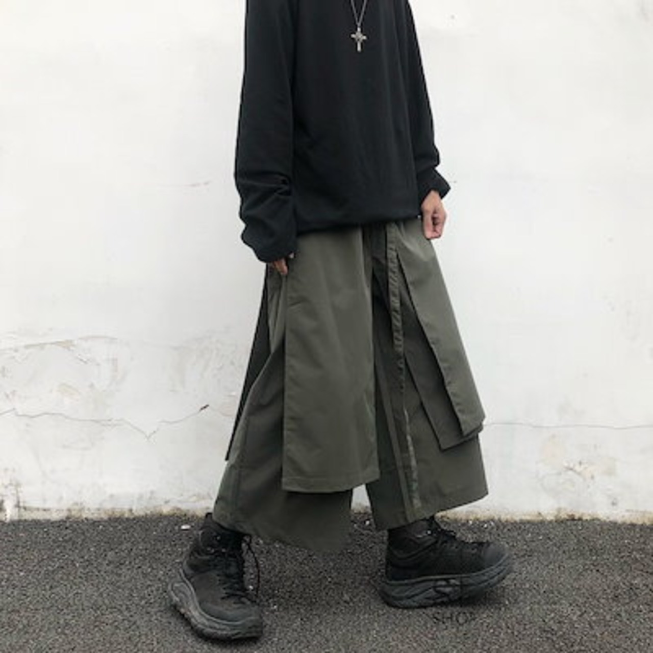 パンツ レディース メンズ ワイドパンツ カジュアル フェイクレイヤード ウエストゴム 男女兼用 衣
