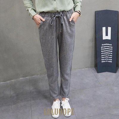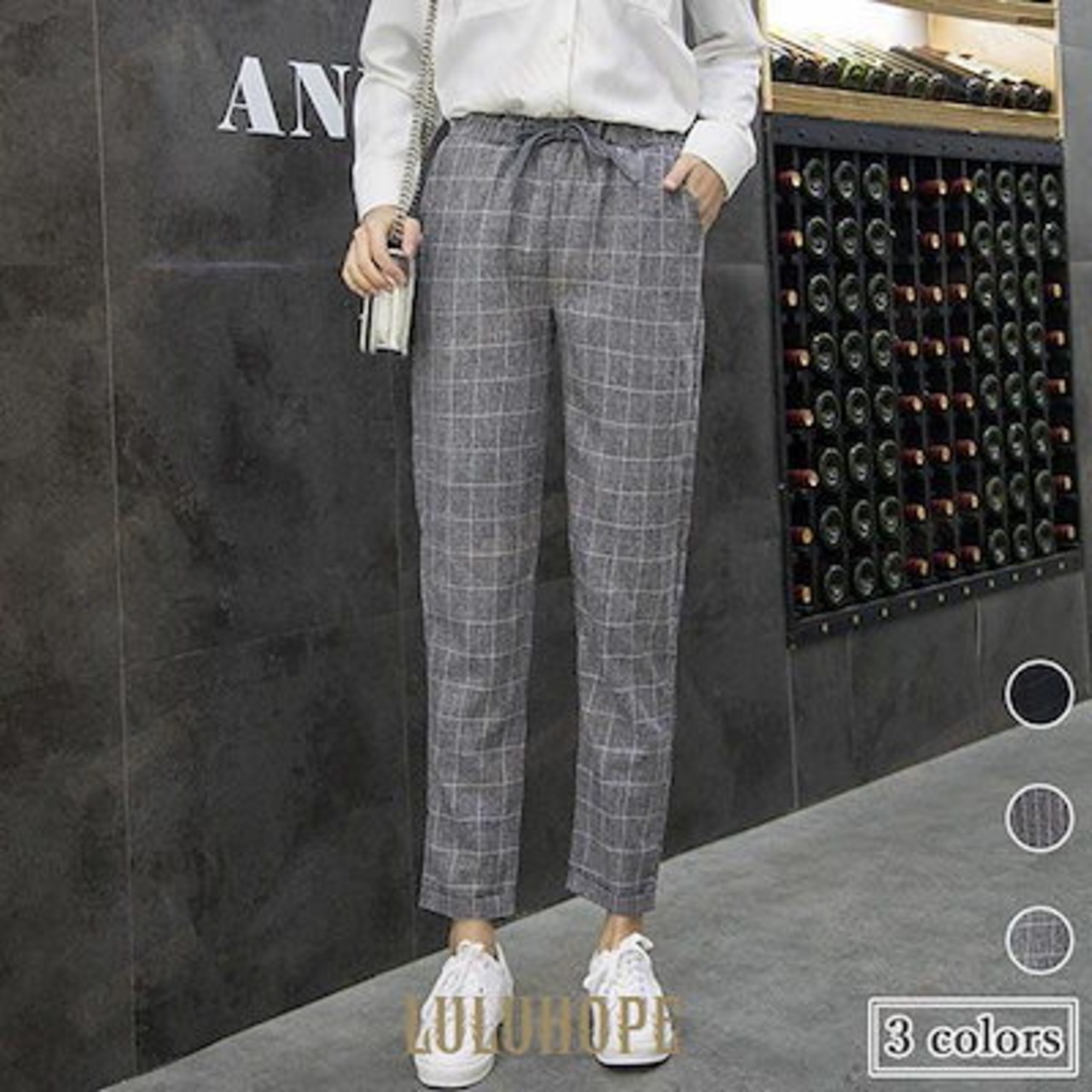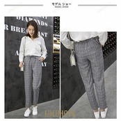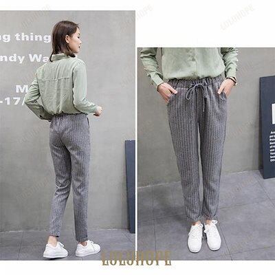 サルエルパンツ レディース テーパードパンツ チェック柄 春 スラックス ストライプ柄 パンツ ウエストゴム 九分丈 薄手 サマーパンツ オフィス