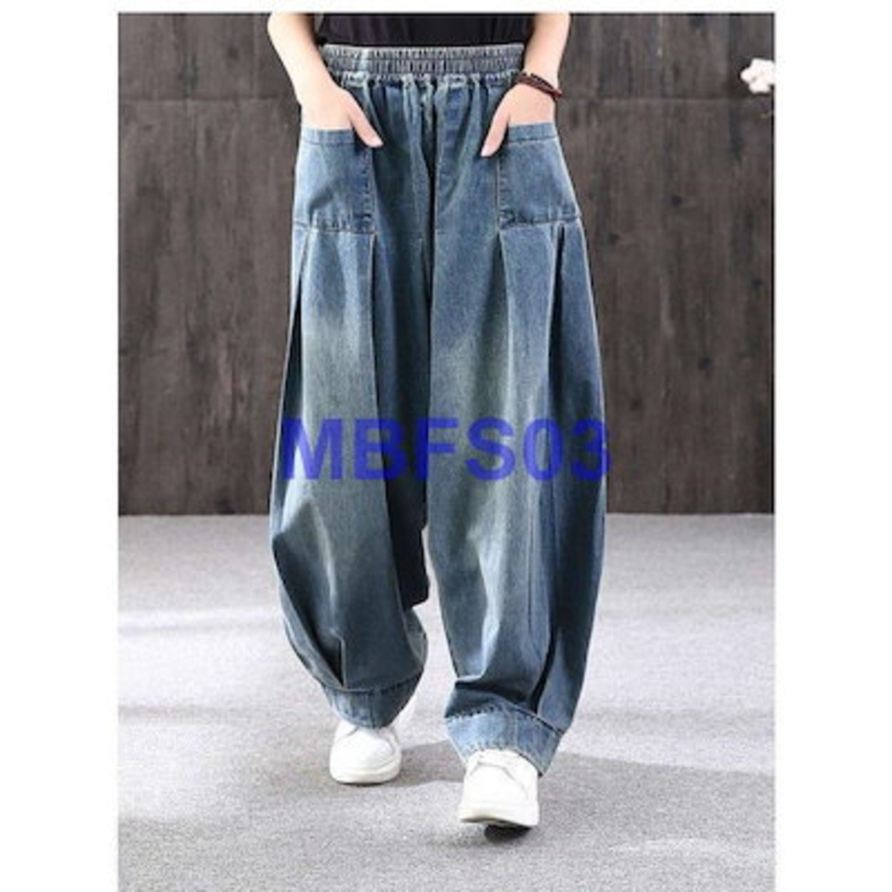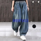 デニムパンツ ロング丈 バルーン サルエルパンツ パンツ レディース デニム バルーンパンツ ウェストゴム ゆったり ハレムパンツ カジュアル 着痩せ
