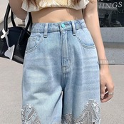 2024春夏 ハイウエスト 韓国 レディース デニムパンツ ボトムス ワイドレッグ ゆるダボ ジーンズ ゆったり カジュアル ストリート カットオフ加工肌見せ ファッション系