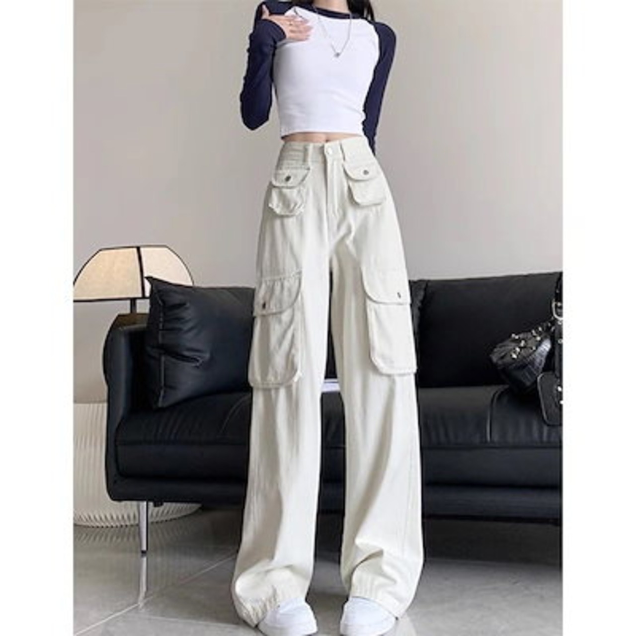 韓国風新作春夏レディースレトロハイウエストゆったりカジュアル着痩せカジュアルスウェットパンツワイドパンツ