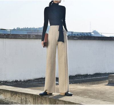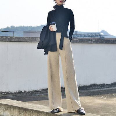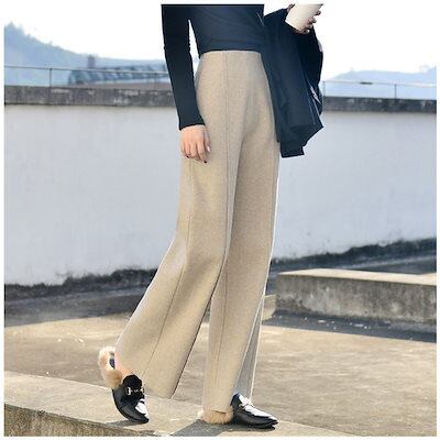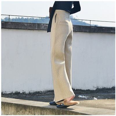 ラシャズボン 着痩せ ズボン 九分丈パンツ ストレートパンツ ロイ タイプ レディースパンツ ゆったり 韓国レディースファッション 脚長効果!ワイドパンツ