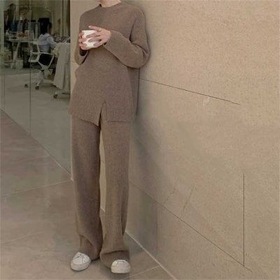 秋冬 新作 ニット 二点セット おしゃれ 気質 アウター レディースセットアップ 上下セット セーター ワイドパンツ セットアップ 通勤 シンプル 福袋