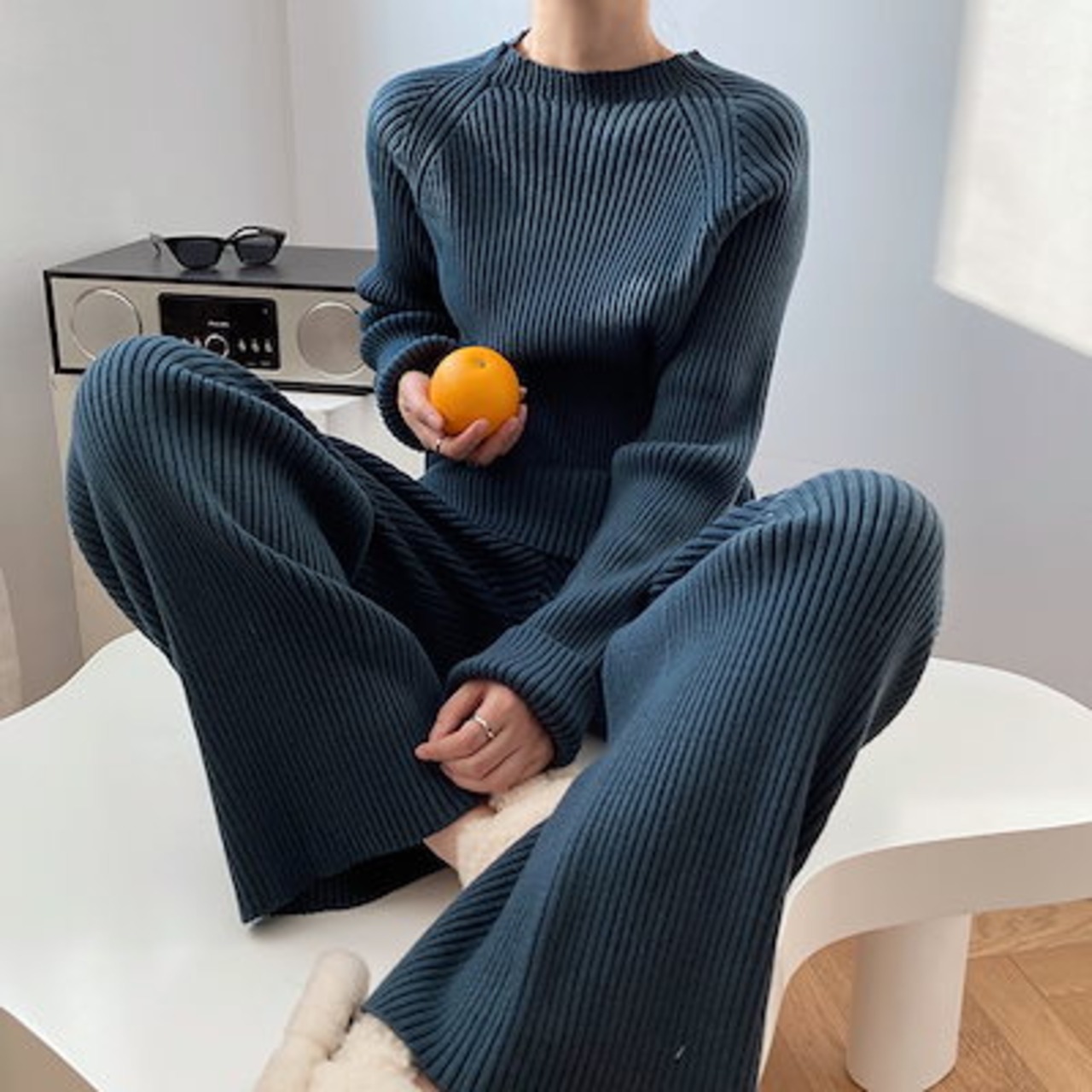秋冬 新作 おしゃれ 気質 上下レディースセットアップ ニット アウター ベーシックニット 二点セット セーター ワイドパンツ セットアップ 通勤 長袖セーター 福袋