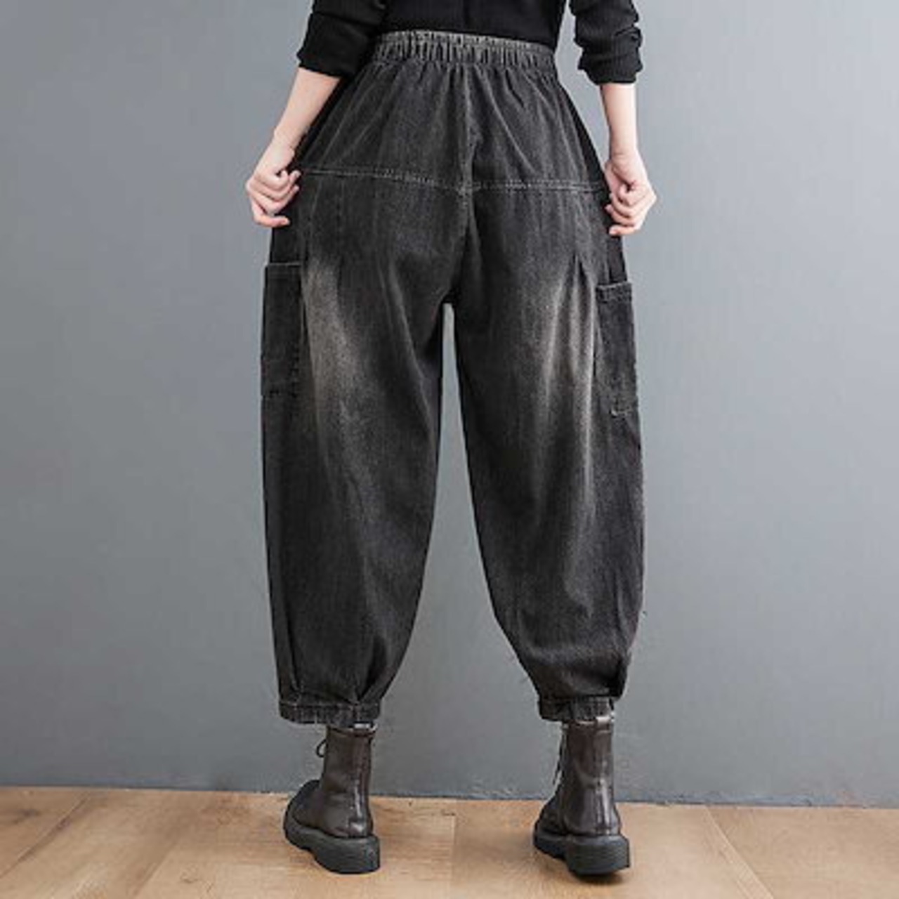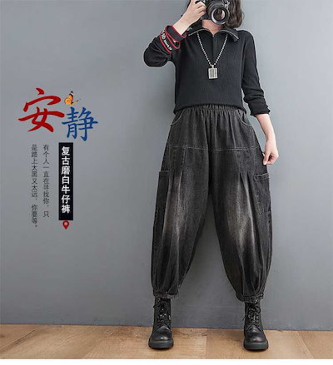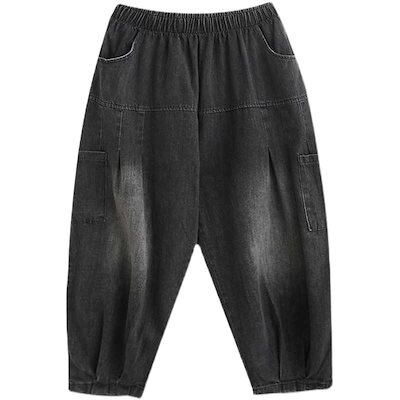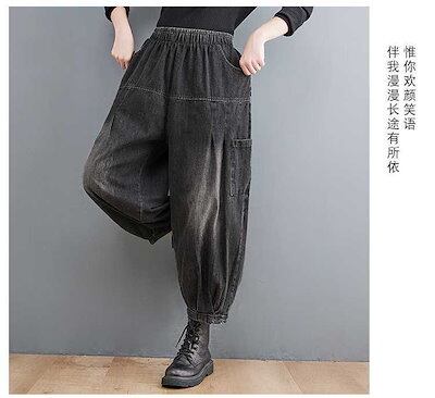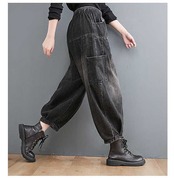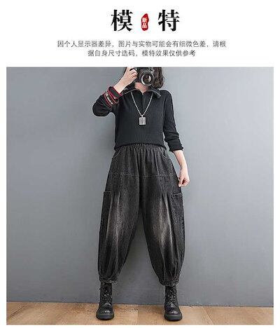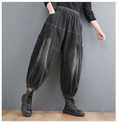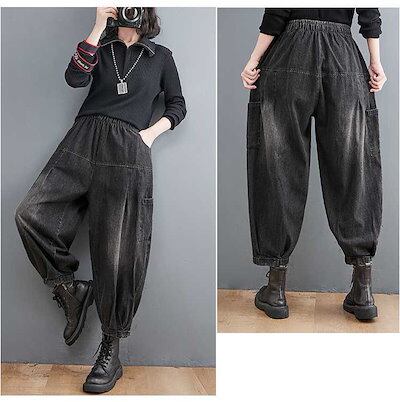 「ファットガール」 2024冬新品 裏起毛 サルエルパンツ ゴム テーパーパンツ デニムパンツ 大きいサイズ 体型カバー レディース ジーンズ メガ割