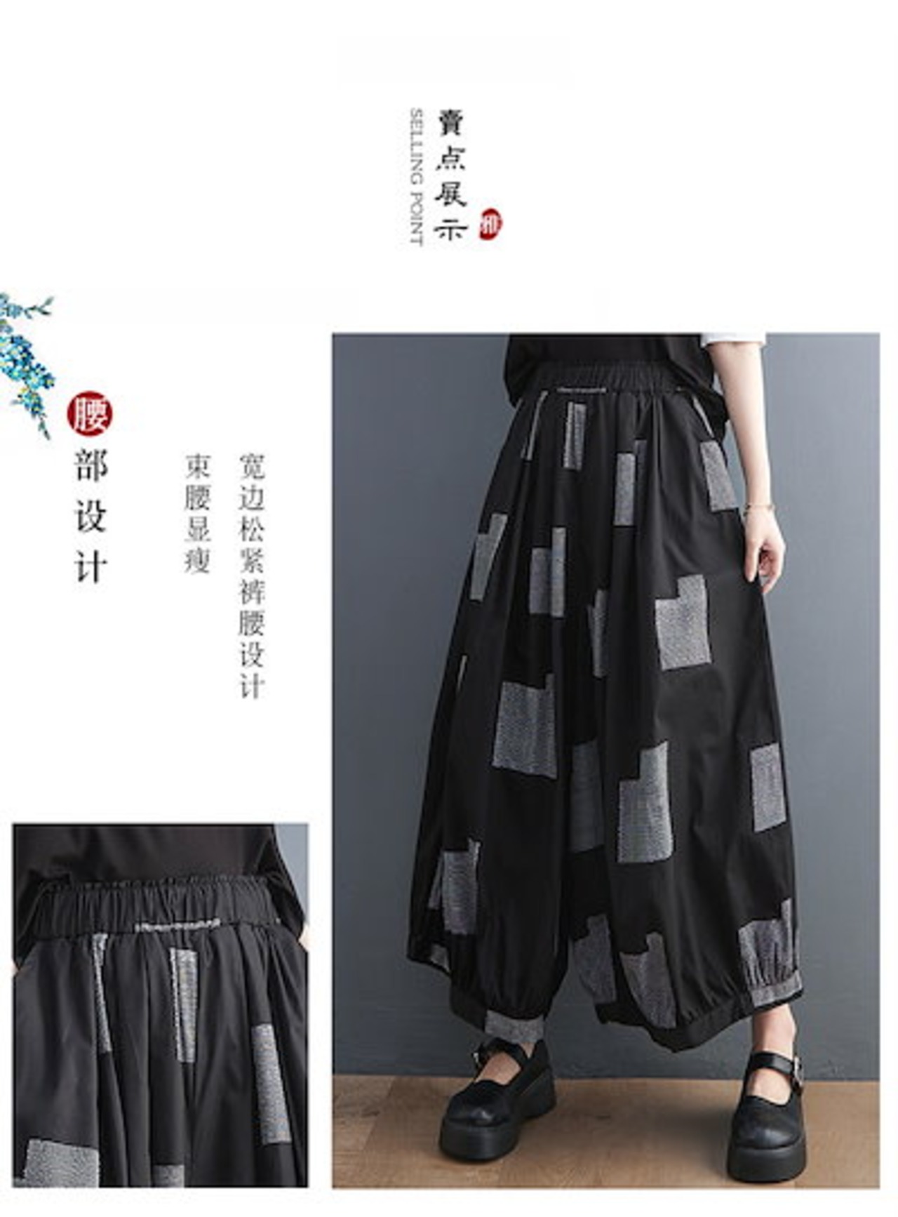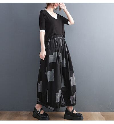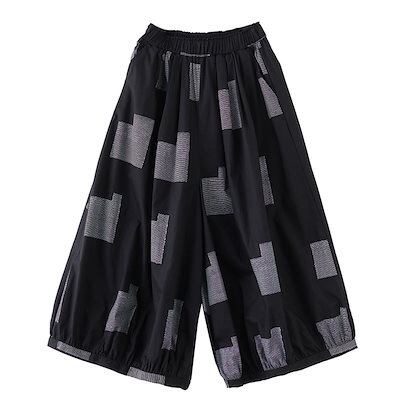 「ファットガール」 夏 九分丈 ワイドパンツ ゴム 体型カバー 大きいサイズ ゆったり レディース