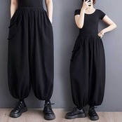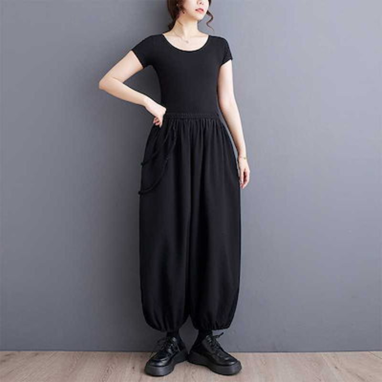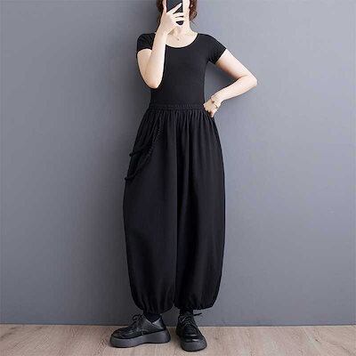 2024春 夏 ロングパンツ 九分丈 テーパードパンツ ゴム ワイドパンツ 体型カバー 大きいサイズ ゆったり レディース