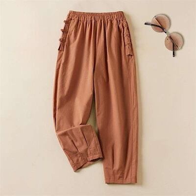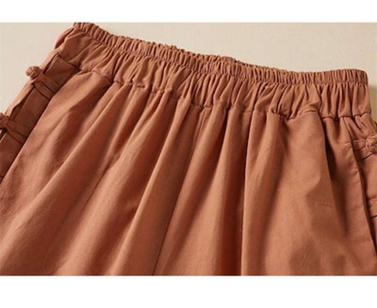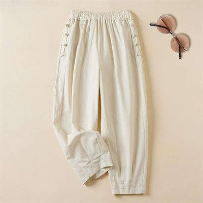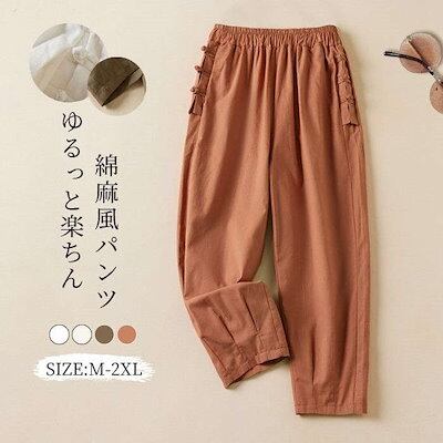 サルエルパンツ リネンパンツ レディース バルーンパンツ 9分丈 夏 春 パンツ ゆったり ポケット付き ワイドパンツ 綿麻 リネン 美脚 コットン ボトムス ズボン カジュアル ウエストゴム 心地よ