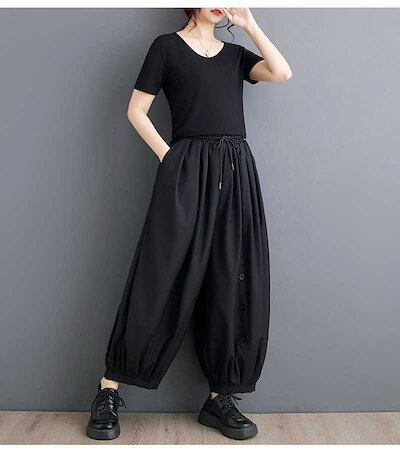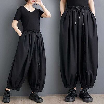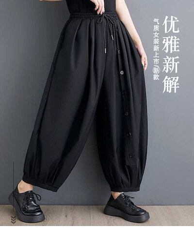 「ファットガール」 2024夏 ワイドパンツ ゴム ハイウエスト 大きいサイズ 体型カバー レディース パンツ