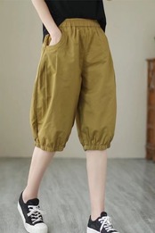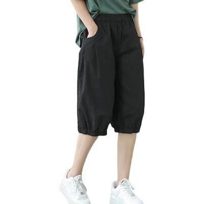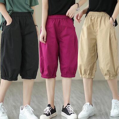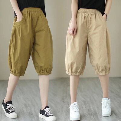 「ファットガール」 夏/薄手/ショートパンツ/レディース/ハイウエスト/ファイブパンツ/ゴムウエスト/ハーレムパンツ/ミドルパンツ メガ割