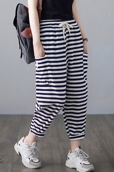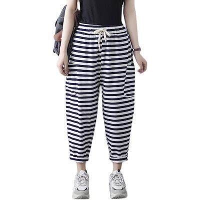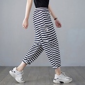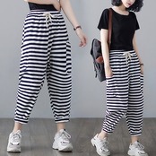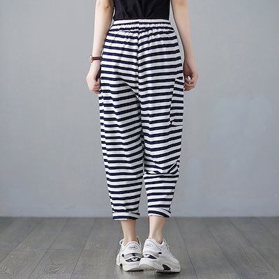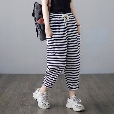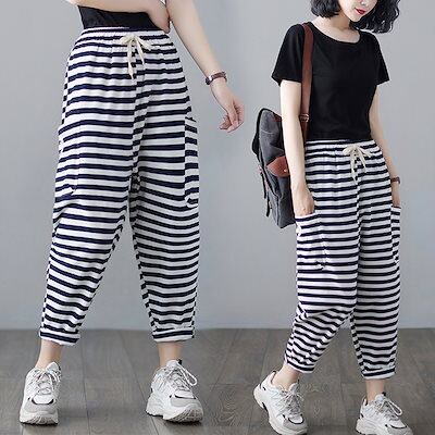 「ファットガール」 スウェット/レディース/夏/薄手/ドレープ/ストライプ/スウェット/ハーレムパンツ メガ割