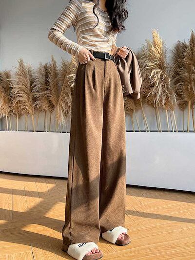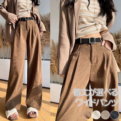 ワイドパンツ レディース コーデュロイ 裏起毛 冬 シンプル 秋冬 秋 ブラウン 白 黒 ベージュ ブラウン 暖かい あったか ハイウエスト かわいい おしゃれ あったか 暖かい ストレート