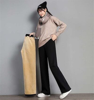 XL ワイドパンツ L ブルー 無地 ロング S ストレートパンツ レディース M カジュアル 裏ボア ブラック ボトムス ウエストゴム おしゃれ レッド 防寒 ズボン 暖か 裏起毛パンツ 着回し き