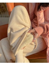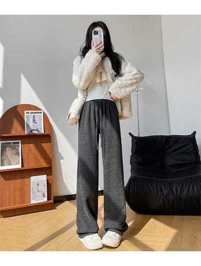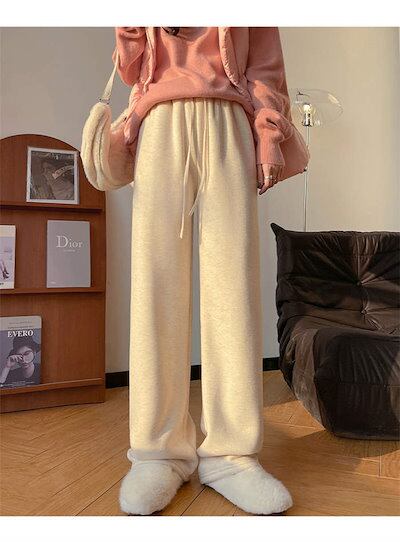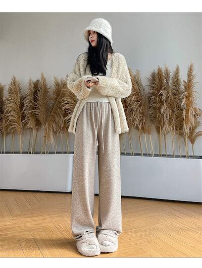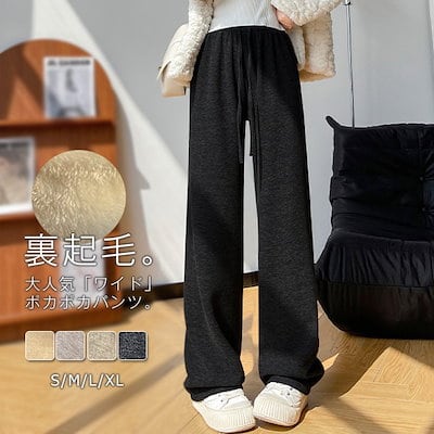ロング レディース 体型隠し おしゃれ 着回し フェミニン きれいめ シンプル ストレートパンツ 暖か リラックス 裏起毛 秋冬 ワイドパンツ 防寒 着?せ ボトムス ウエストゴム パンツ ズボン カ
