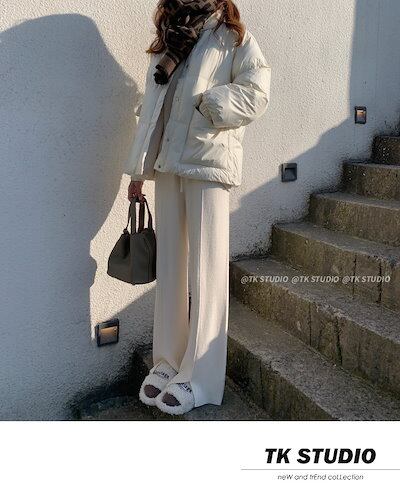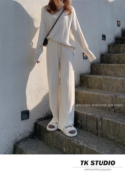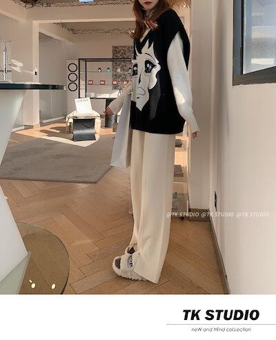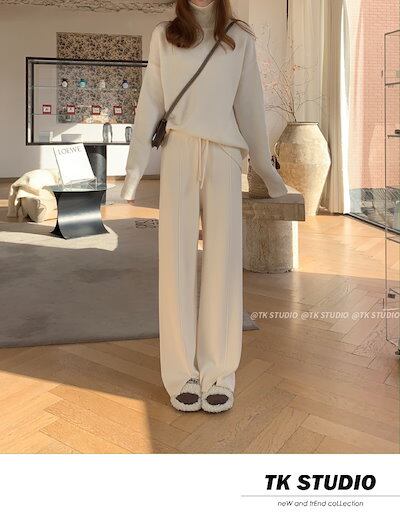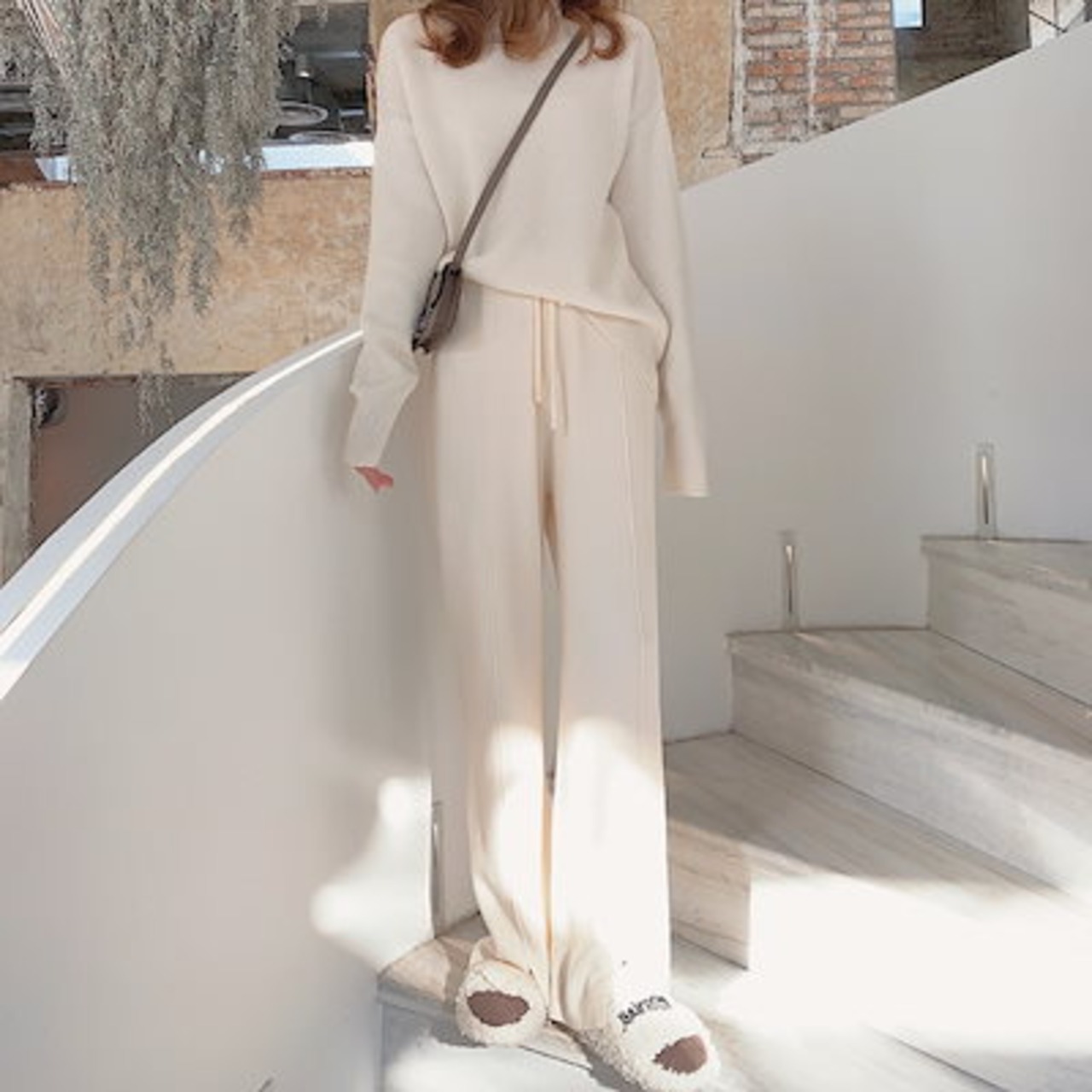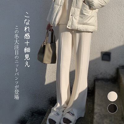 ストレートパンツ ワイドパンツ 体型カバー ボトムス リブパンツ ストレッチ ワイド リブニット 長ズボン レディース プリーツパンツ 伸縮性 ポケット付 パンツ ロング丈 ニットパンツ リブ ロン