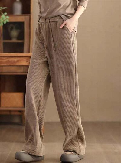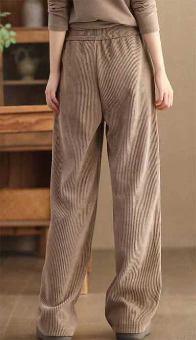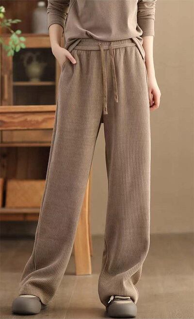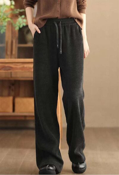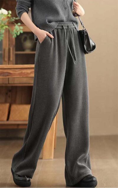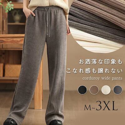 ストレートパンツ ゆったり パンツ 通勤ボトムス ボトムス ワイド ゆったり リブパンツ ウェストゴム 着回し ワイドパンツ レディース ロング丈 無地 シンプル 冬 秋 カジュアル コーデュロイ 暖